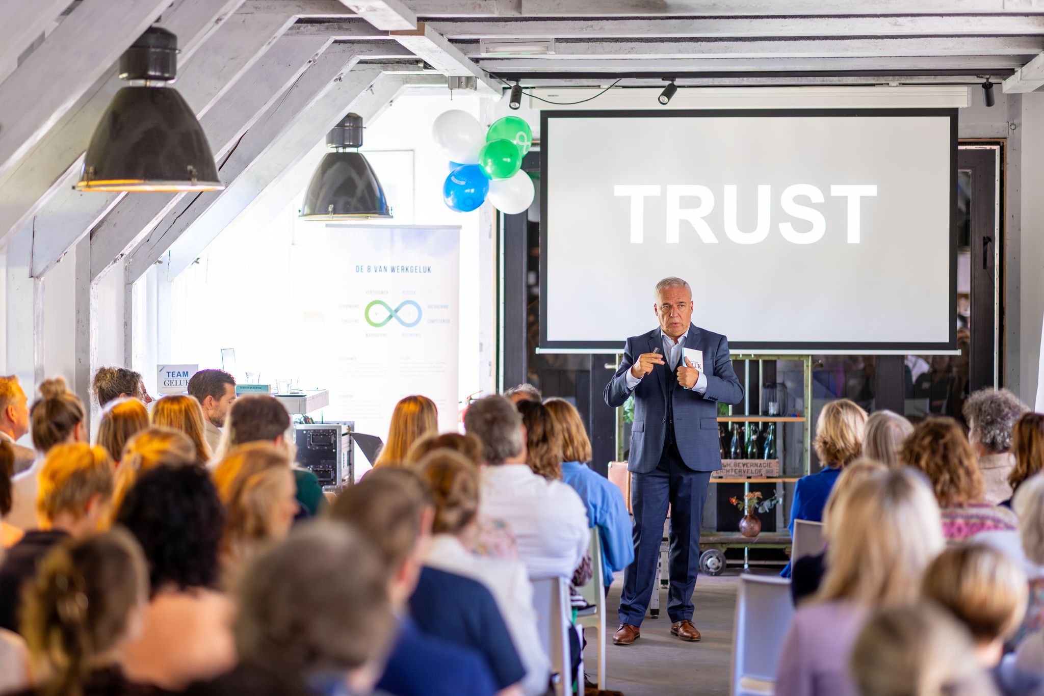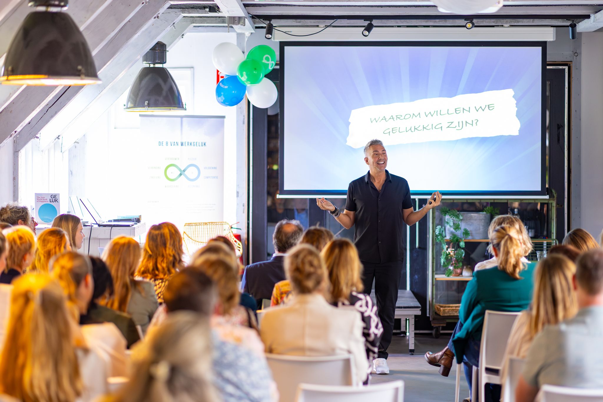 Deze vragen brachten ons direct bij de essentie van werkgeluk: het zit niet in grote gebaren, maar in betekenisvolle ervaringen. Het verhaal zette de toon voor een dag vol verbinding, inspiratie en het delen van wat werkt.